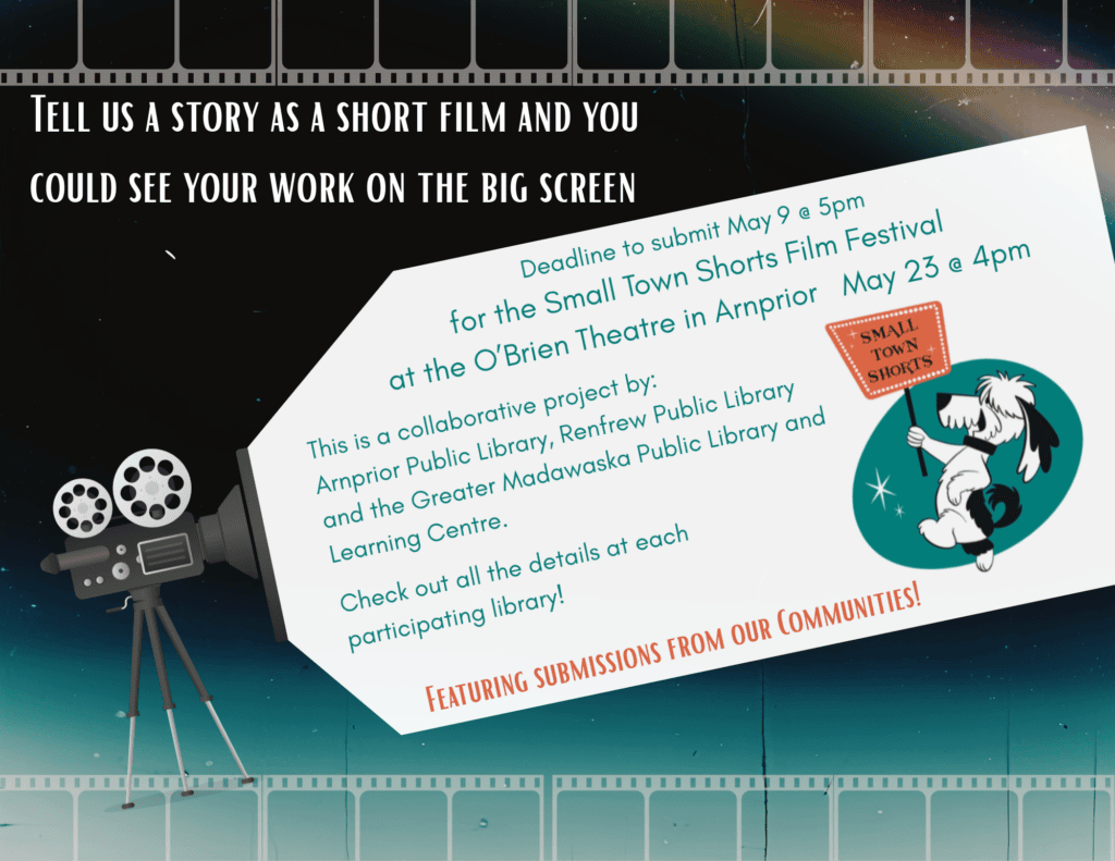 Submission Deadlines: May 9 at 5pm – selected films to be shown at the O’Brien Theatre, Arnprior on May 23 at 4pm