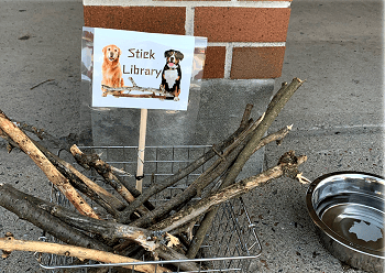 The library’s got something for everyone . . . including a new stick library located right outside of the main doors. While you need a library card to borrow items, the stick library is there for all pups to enjoy!